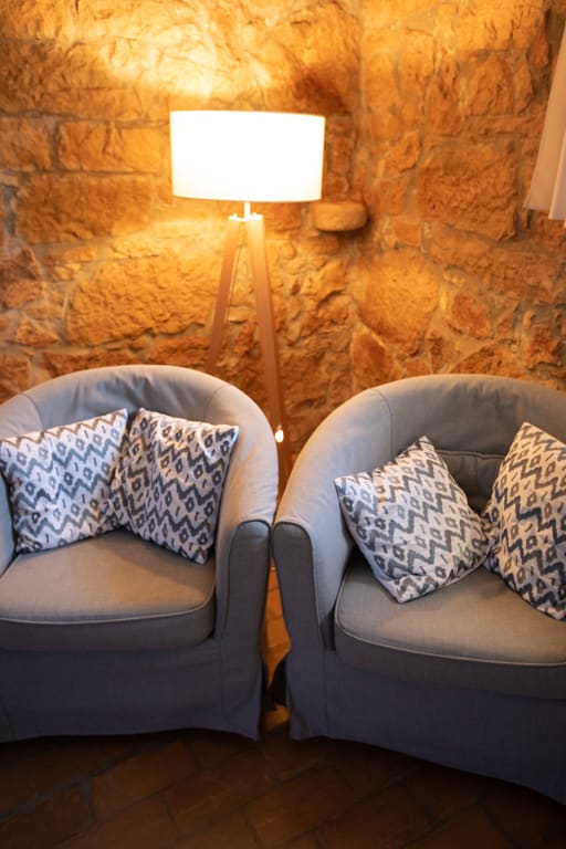 Im Erdgeschoss befindet sich das großzügige Kaminzimmer, das mit Schrank und Schlafsofa (1,40m breit) ausgerüstet ist und somit auch als viertes Zimmer für zwei Personen dienen kann. Die alten Deckenbalken und der Ziegelboden sind original, also auch 200 Jahre alt, und machen zusammen mit dem Kaminofen den rustikalen Stil dieses Zimmers aus. Früher war hier der Stall für den Boskarin (Istrische Rinderrasse) ;-).